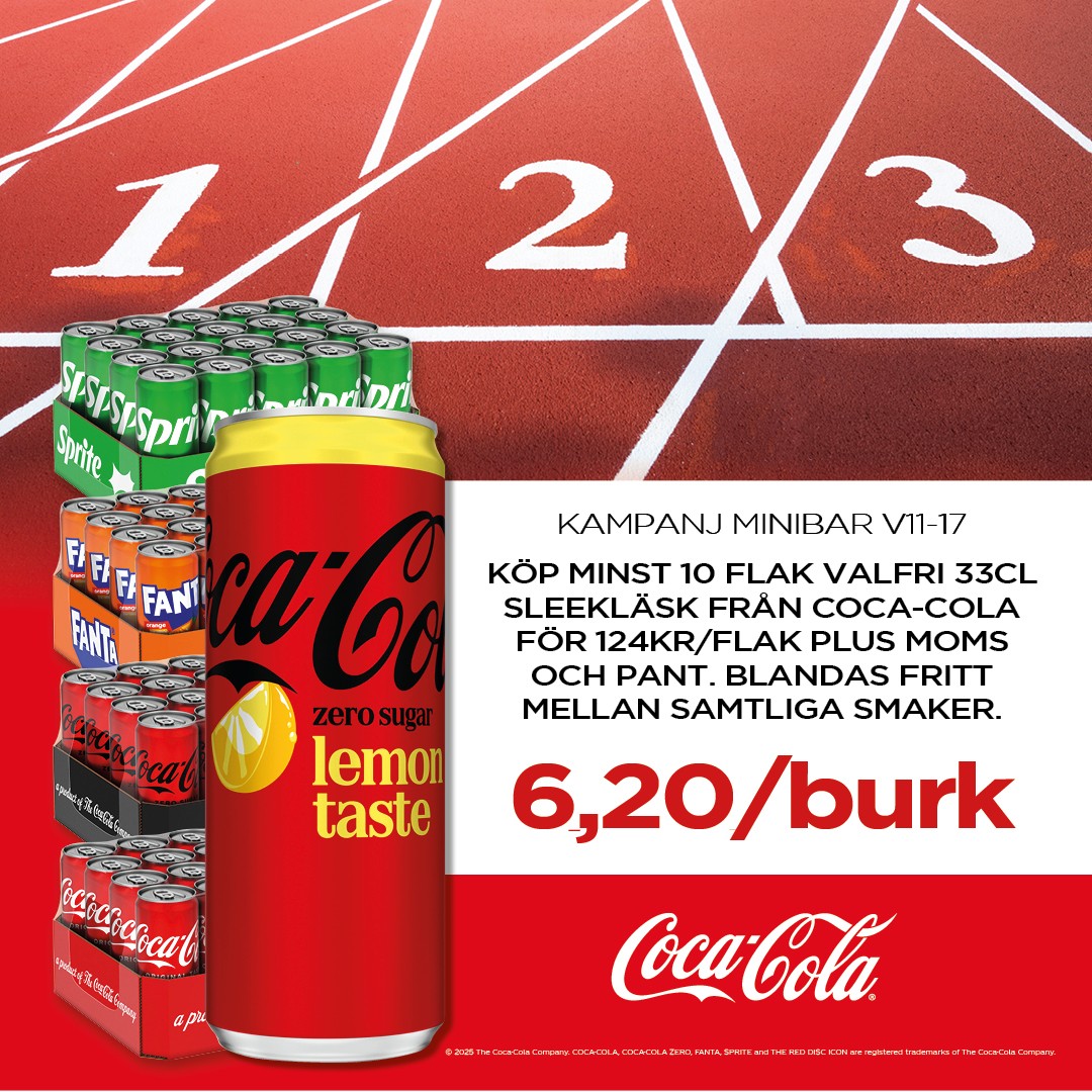 Våra kunder har en förhandlad prislista som är bra, dessutom kan dom ta del av grossistens kampanjer och nu även våra egna MiniBar-kampanjer som är planerade efter när våra kunders inköpsbehov är som störst. Så oavsett om ni ska fylla upp fotbollscafeterian inför säsongsstarten, arrangera valborgs firande eller planerar för en cup så passa på att fylla på lagret! Vår kampanj gäller vecka 11-17. Kampanjer gäller även Powerade och Bonaqua 50cl.